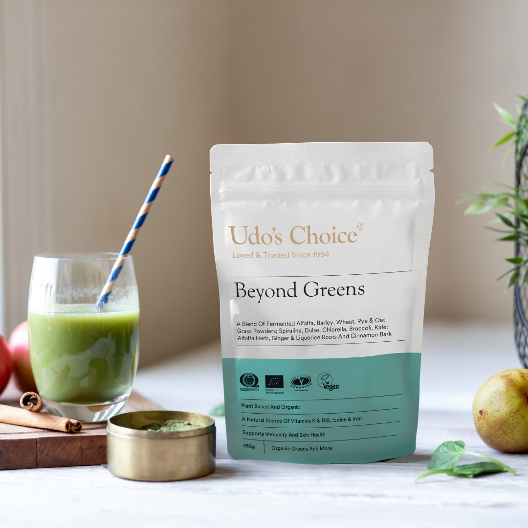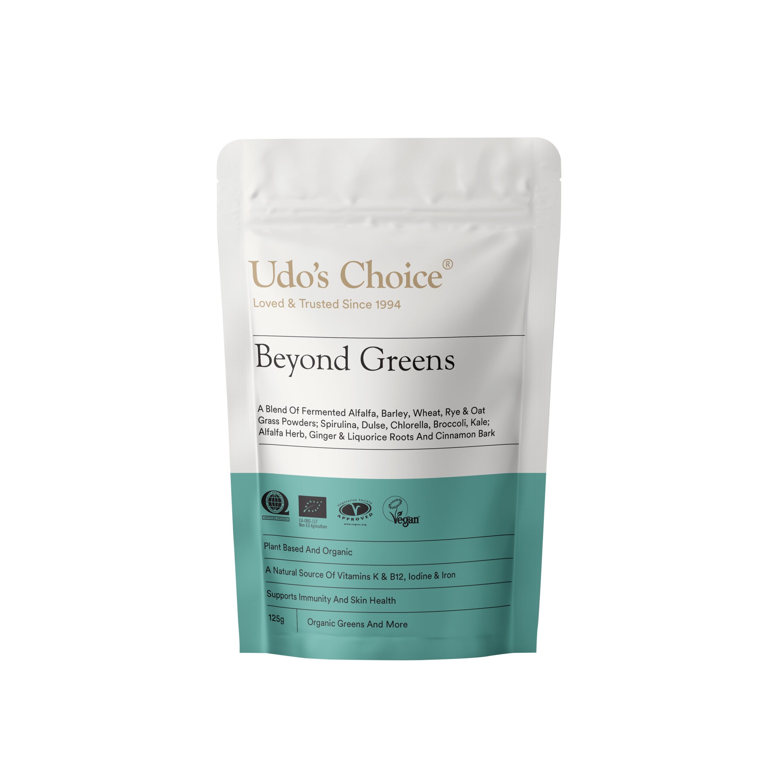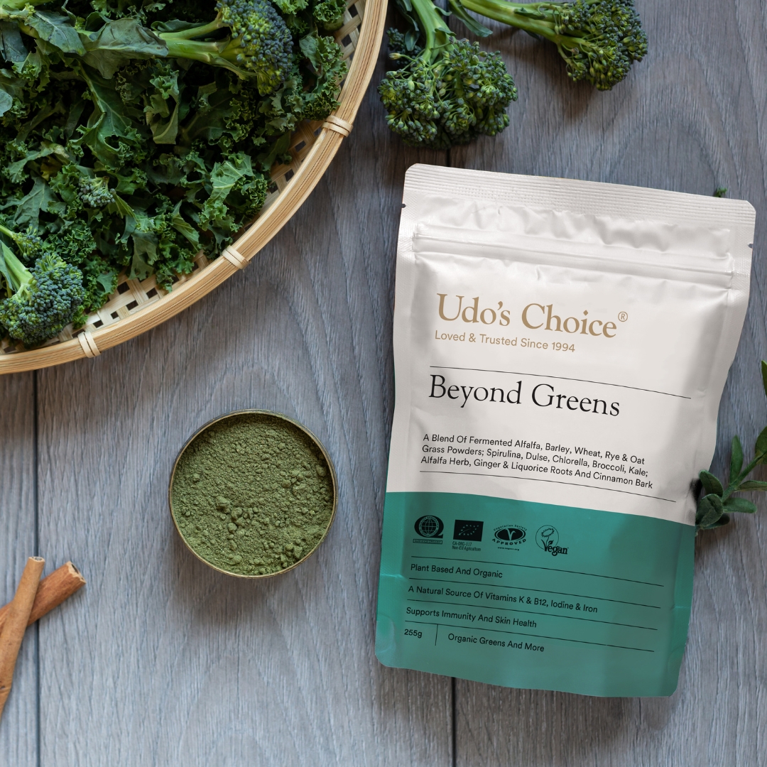 Udo’s Choice Beyond Greens to witalizująca mieszanka roślinna opracowana przez Dr Udo Erasmusa, która łączy w sobie siłę certyfikowanych, ekologicznych składników pochodzenia naturalnego.